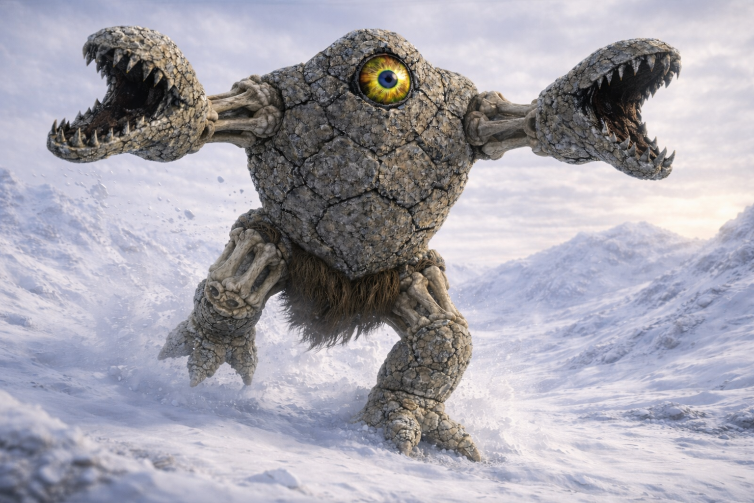 Un autre animal. L'IA c'est mal. Ok, mais quand même... Un petit animal de cauchemar. Ce qui est bien avec les cauchemars, c'est qu'ils prennent plusieurs formes. Un exemple de tournedent réalisé avec CGPT. Les membres tournent autour des articulations en os.